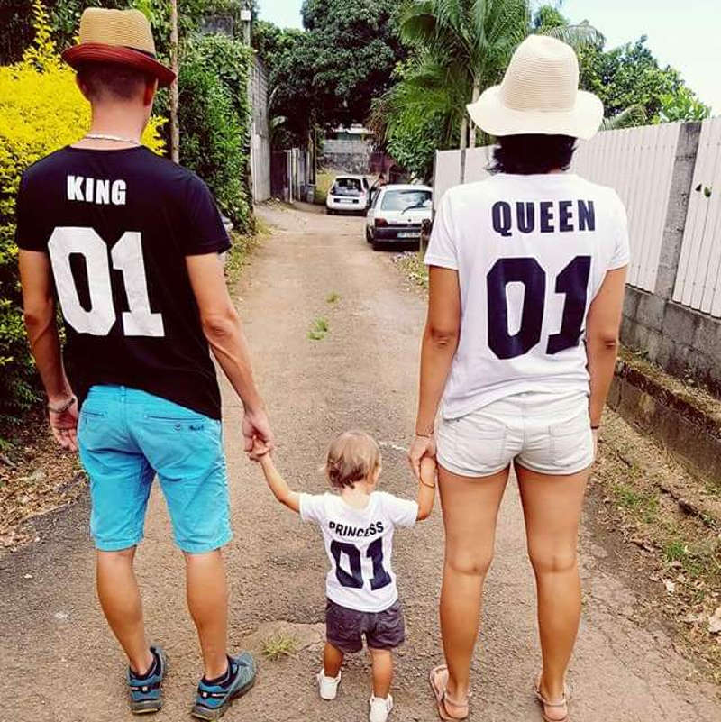 Le style ça se transmet! On craque totalement sur ce look en famille. A partir du 12 mois. Tee-shirt uni sur le devant et avec inscriptions dans le dos. PAPA : noir : KING 01 MAMAN : blanc : QUEEN 01 GARCON : noir : PRINCE 01 FILLE : blanc : PRINCESS 01 composition 100% coton