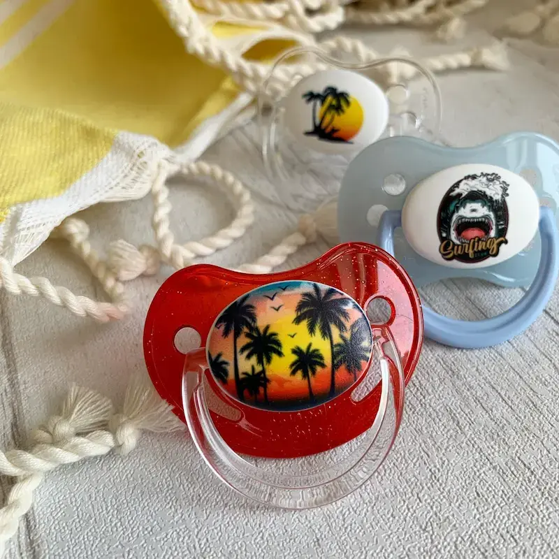 Créez une tétine unique pour votre bébé grâce à notre service de personnalisation complet et intuitif ! Nous mettons à votre disposition un large panel d’images soigneusement catégorisées par thèmes : animaux adorables, fleurs délicates, étoiles scintillantes, cœurs tendres, drapeaux, et bien plus encore. Laissez libre cours à votre imagination : combinez plusieurs éléments, inventez votre propre design et ajoutez un texte personnel (prénom, message spécial, date…). Chaque tétine devient une création originale, reflétant votre amour et votre créativité.