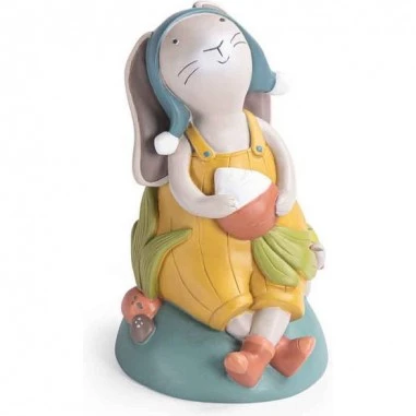 Une tirelire à l’effigie d’un petit lapin, prêt à déguster le radis qu’il tient dans les mains! Il gardera précieusement tous les petits trésors qu’on lui confie.