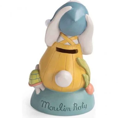 Découvrez la tirelire lapin de la collection Trois Petits Lapins de Moulin Roty, une jolie tirelire en résine en forme de lapin pour les enfants.