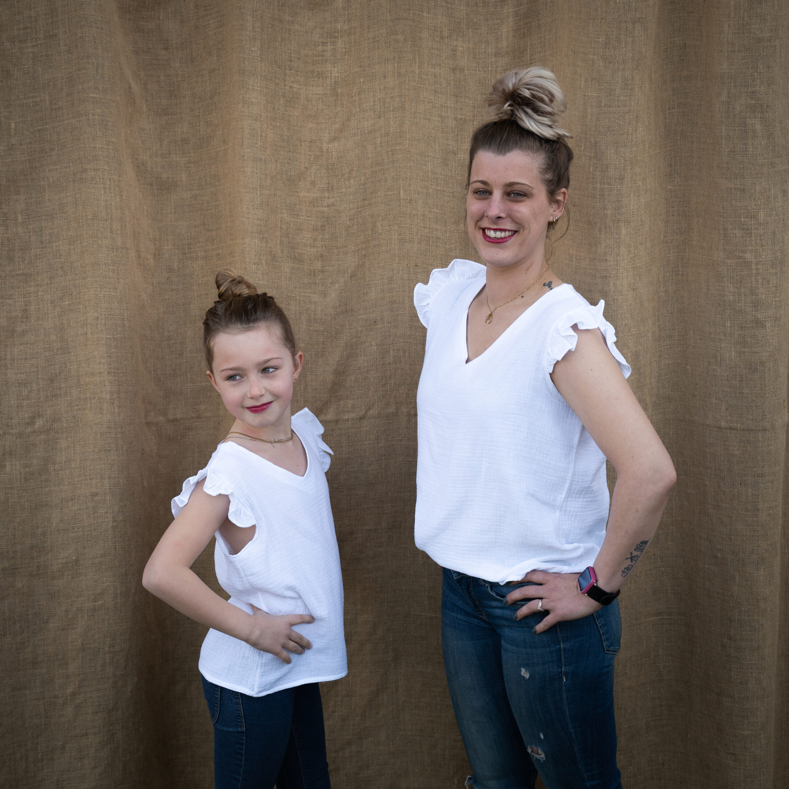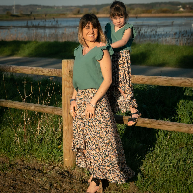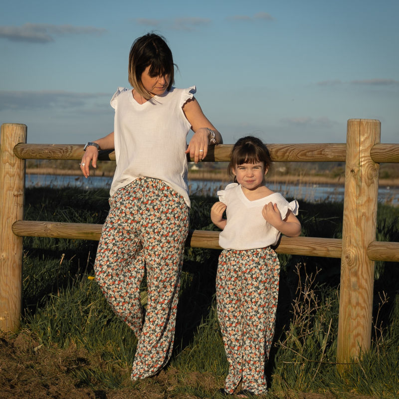 Une blouse en gaze de coton pour maman et fille. Taille Fille : Du 4 ans au 16ans/XS Taille Femme : Du 16ans/XS au XL Composition : 100% Coton