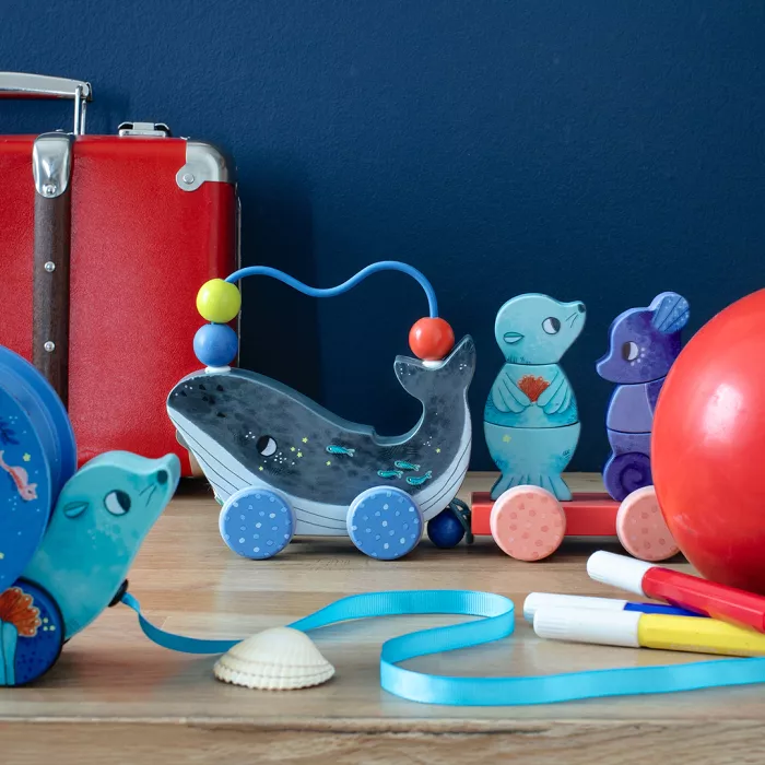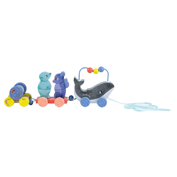 Bloup, bloup, sous l’océan la baleine fait danser dans son sillon ses amis, l’otarie et l’hippocampe. Train d’activités en bois 2 en 1, à la fois empilable et jouet à tirer. Comprend 1 locomotive + 2 wagons détachables. Collection Les Aventures de Paulie Dimension du produit 43 x 8 x 13,5 cm Détails des matières […]