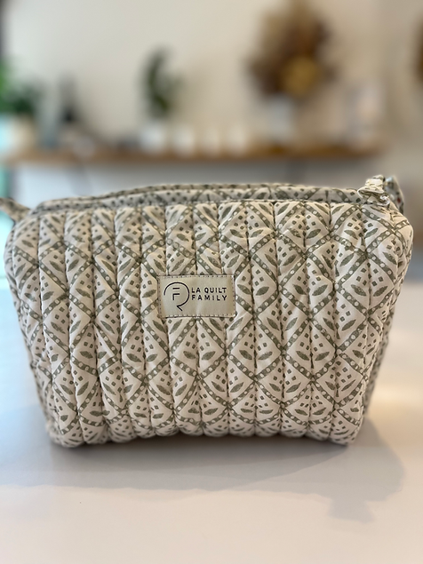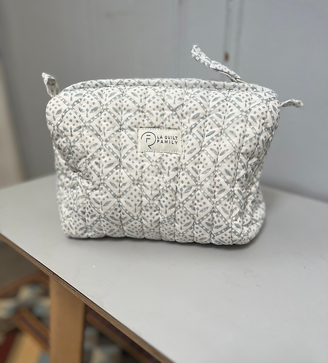 Rendez vos sorties plus organisées et élégantes avec cette jolie trousse de toilette en coton aux motifs Jaïpur au bloc print exquis de chez LaQuiltFamily. Elle sera parfaite pour ranger tous les essentiels de beauté et de soins, pour vous ou bébé.