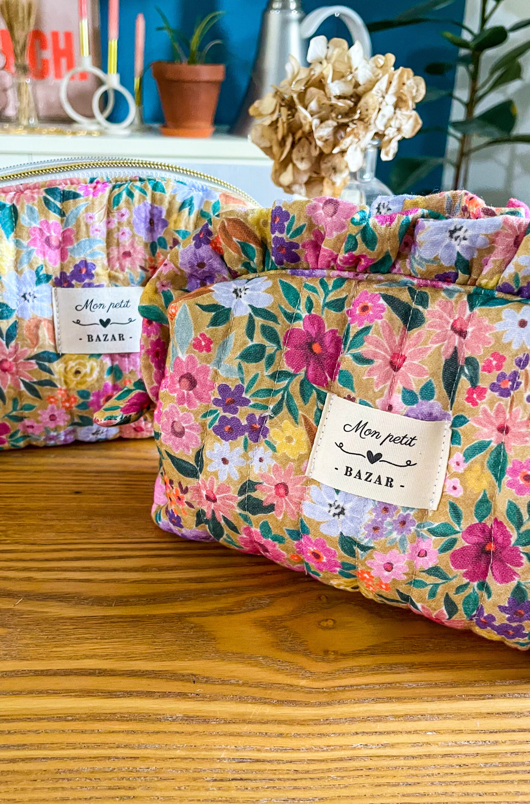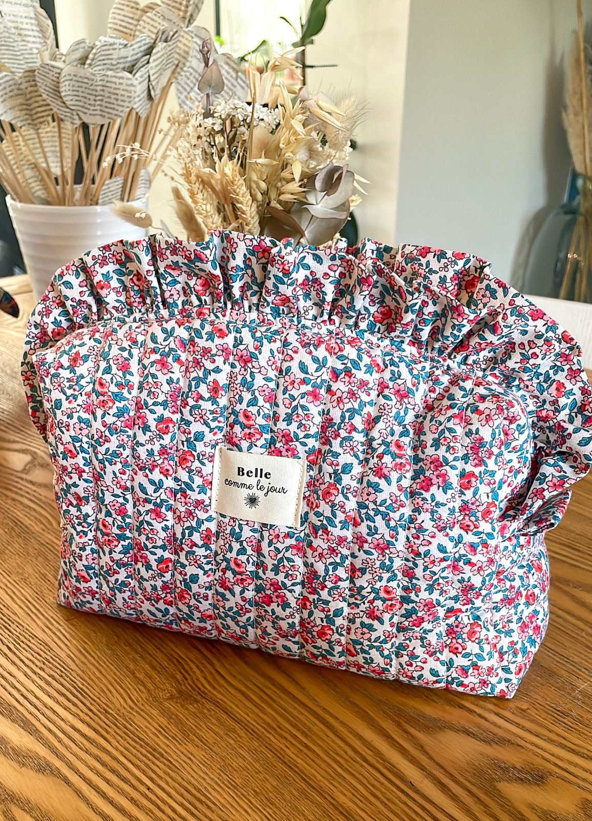Trousse de toilette matelassée à volants