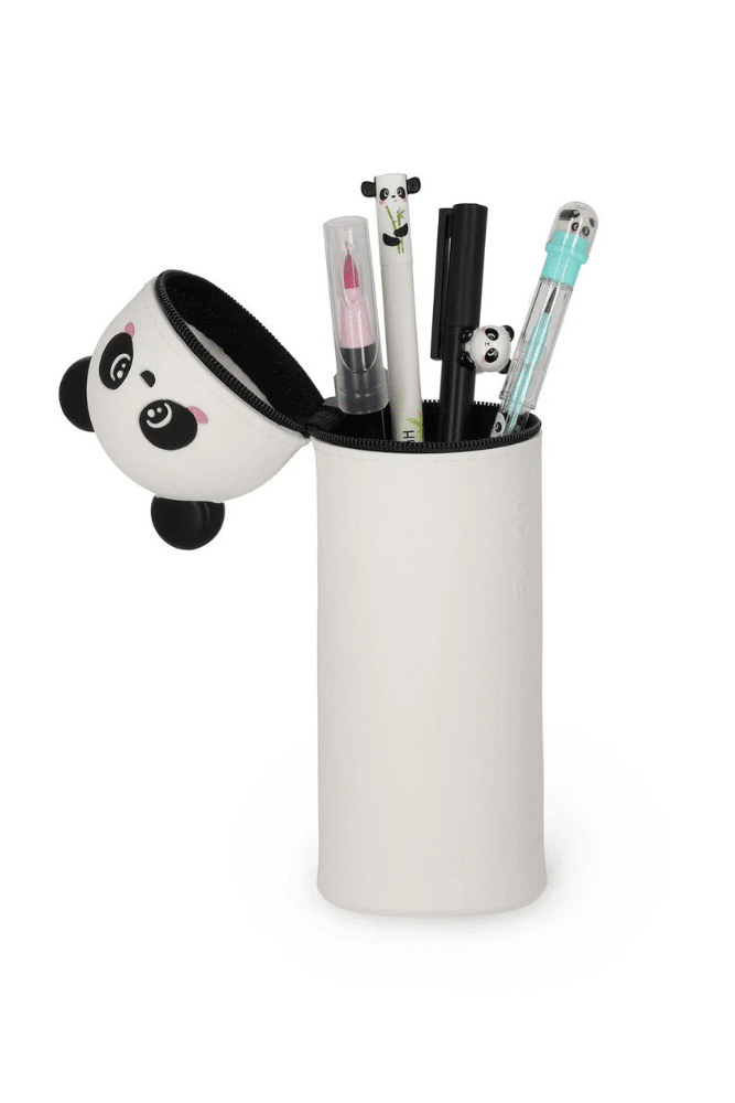 Découvrez l’iconique trousse en silicone de la marque Legami en version Panda. Une trousse 2 en 1 en silicone souple, peut se transformer en pot à crayons de table rien qu’en tournant sur lui-même. Idéale pour emporter vos stylos et vos crayons préférés à l’école, au bureau et où bon vous semble.