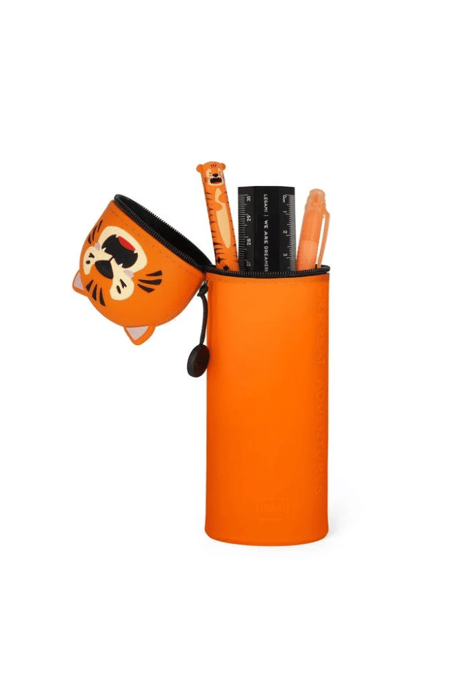 Découvrez la trousse 2 en 1 en silicone Tigre de Legami. Cette trousse peut se transformer en pot à crayons rien qu’en tournant sur lui-même ! Idéale pour emporter vos stylos et vos crayons préférés à l’école, au bureau et où bon vous semble.