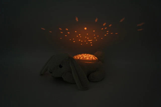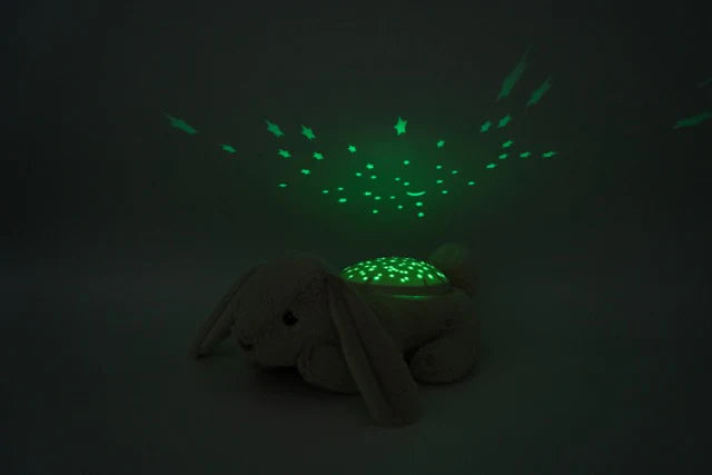 Twilight Buddies™ – La peluche veilleuse Lapin apaisera votre enfant au moment du coucher. Elle transforme une pièce sombre en un ciel Ă©toilĂ© en projetant la lune et 3 vraies constellations sur les murs et le plafond de la chambre, avec projection alternĂ©e en 3 couleurs apaisantes : vert, bleu et ambre