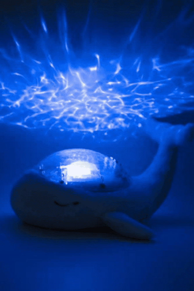 Découvrez la peluche Veilleuse rechargeable Baleine combinant des fonctionnalités visuelles et sonores. Elle transformera la chambre de votre enfant en véritable oasis de paix. Pour l’activer, il suffira d’appuyer sur la carapace et la veilleuse se mettra en route. Le projecteur créera un effet sous-marin apaisant, il diffusera des vagues légèrement ondulantes qui calmeront votre enfant progressivement et l’aideront à s’endormir. Pour les sons, vous aurez le choix entre deux mélodies et deux bruits blancs. Vous pourrez ajuster le volume selon six niveaux différents. Très pratique, une fonction timer arrêtera la veilleuse au bout de 23 minutes, un temps recommandé…