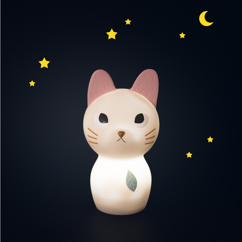 Cette veilleuse nomade petit chat éclaire la chambre de sa douce lumière.