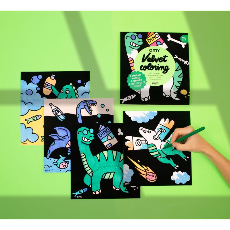 Apprendre en s’amusant grâce aux coloriages velours tout doux ! Venez découvrir l’univers de notre Dino à travers ces 6 tableaux velours à colorier ! Facile et ludique, le velours permet de guider les plus petits pour colorier sans dépasser. Idéal pour développer la dextérité et la créativité.