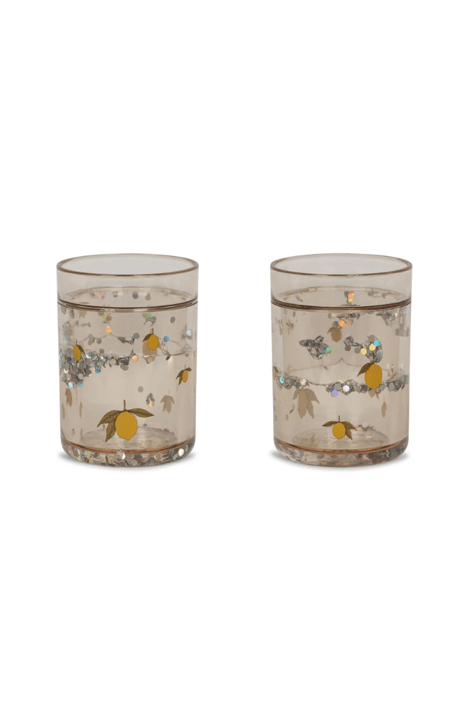 Comment ne pas craquer sur ce lot de 2 verres à paillettes de la marque Konges Slojd. Vos enfants commenceront à boire tout seul comme des grands avec un coup de fun Cette tasse est fabriquée à partir de PCTG, un matériau non-toxique, extrêmement durable et recyclable, sans risque et parfait pour résister aux chutes.